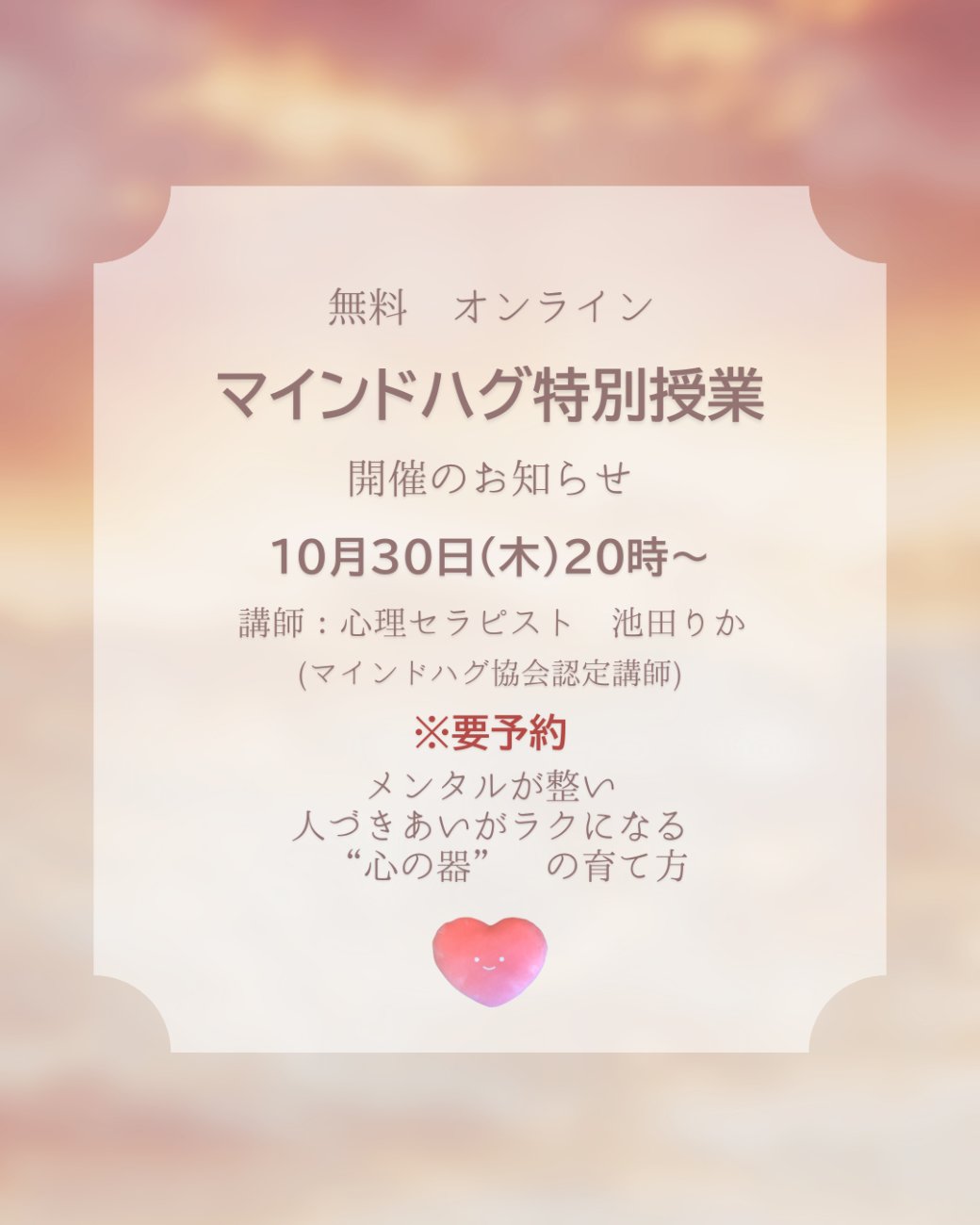 そんな“心を抱きしめる体験”を、より多くの方に体感していただきたくて、このたび マインドハグ特別授業 を開催します♪